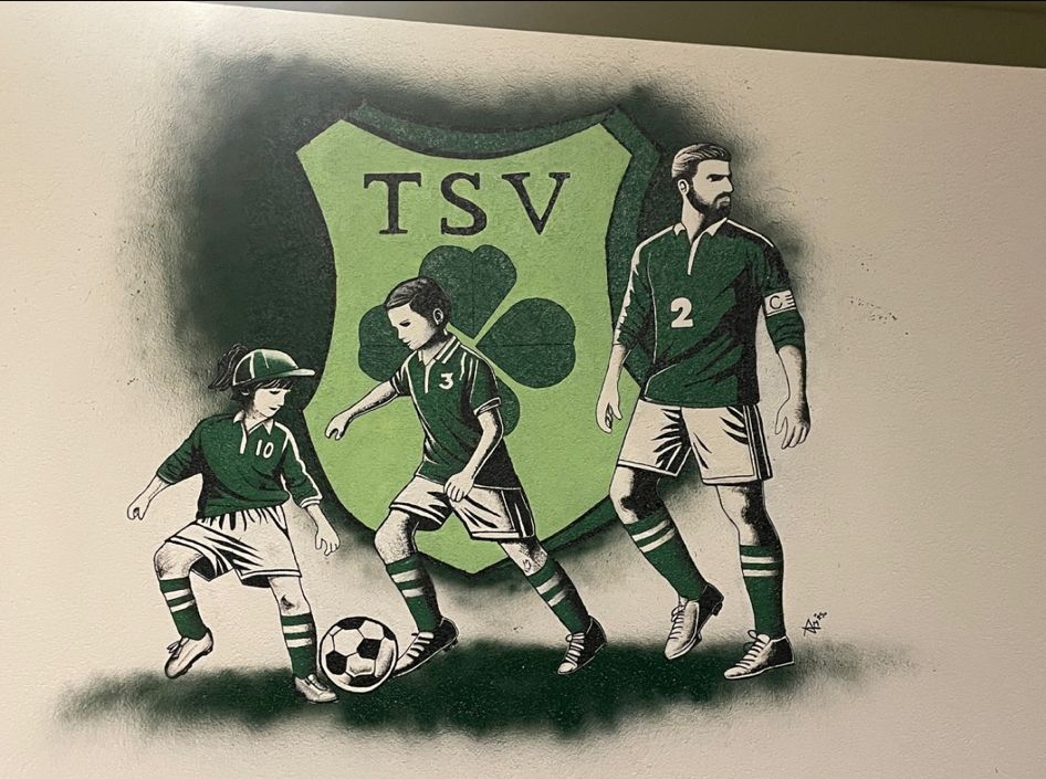 Das Werk ist mehr als nur eine Dekoration. In den Vereinsfarben Grün und Weiß gehalten, symbolisiert das Bild die Einheit und die Zukunft des TSV Straßberg.